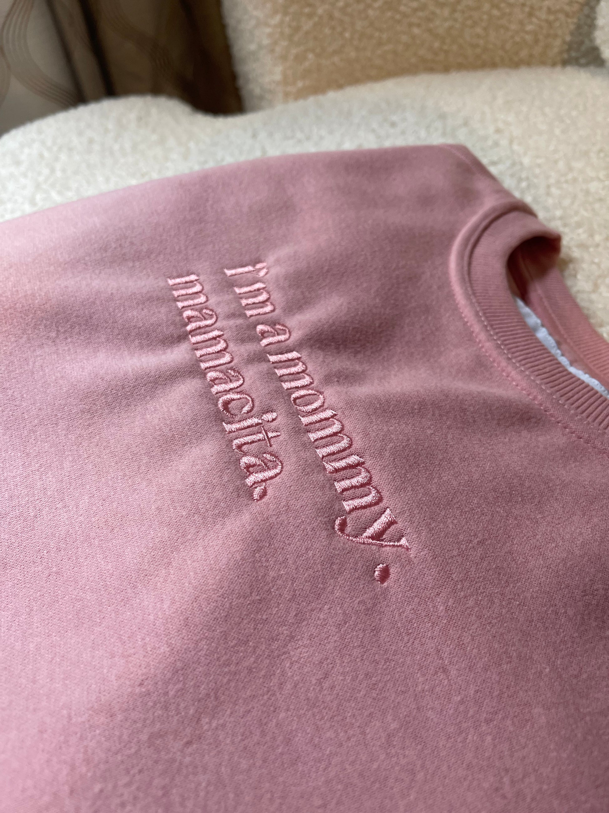 ✨Preferred thread color for the "I'm a mommy. Mamacita” wording (refer to thread color chart in the images)